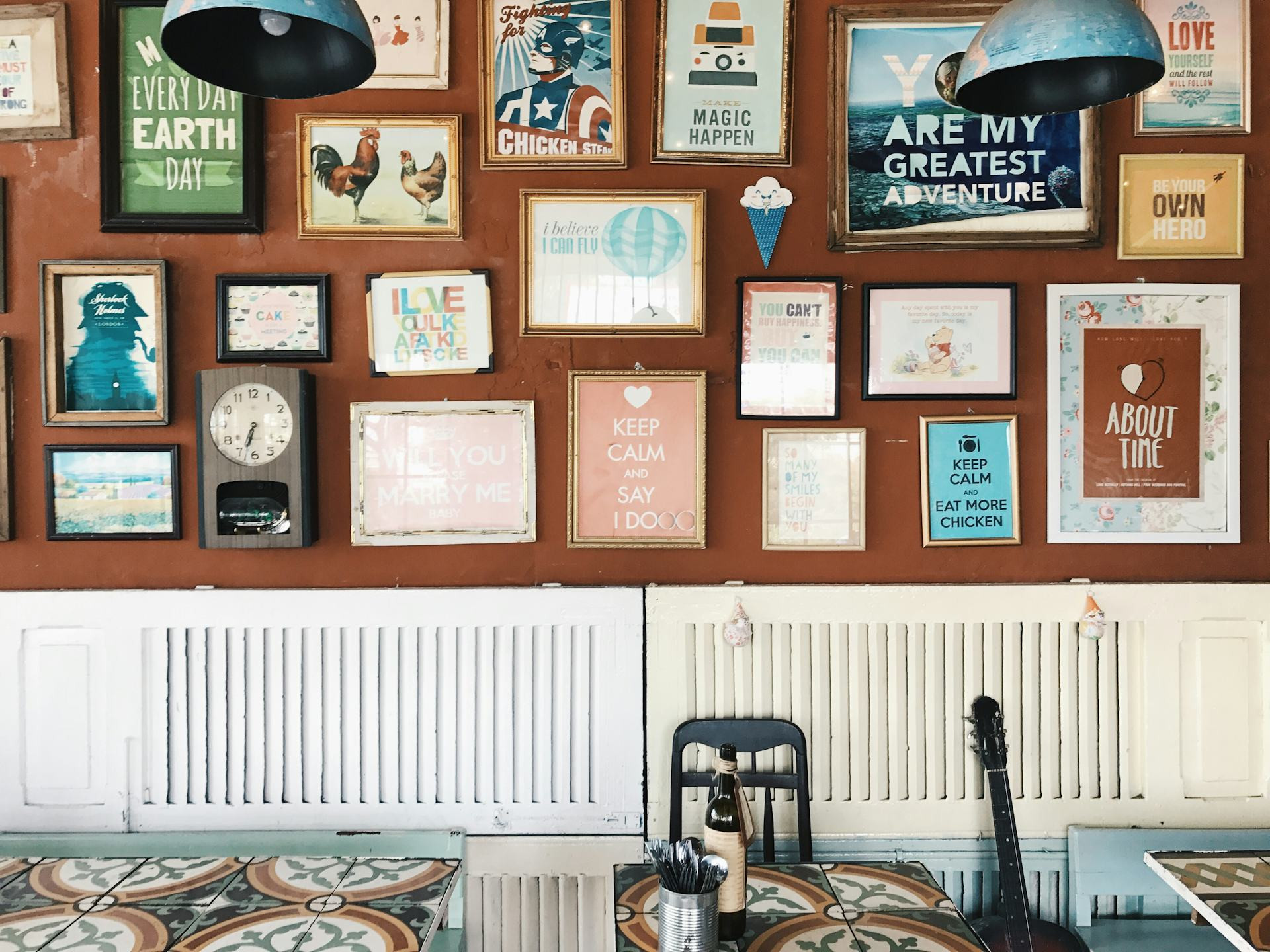 - Kreativ og farverig: Kombinér forskellige stilarter – illustrationer, kunsttryk og citater – men hold en rød tråd gennem farverne.